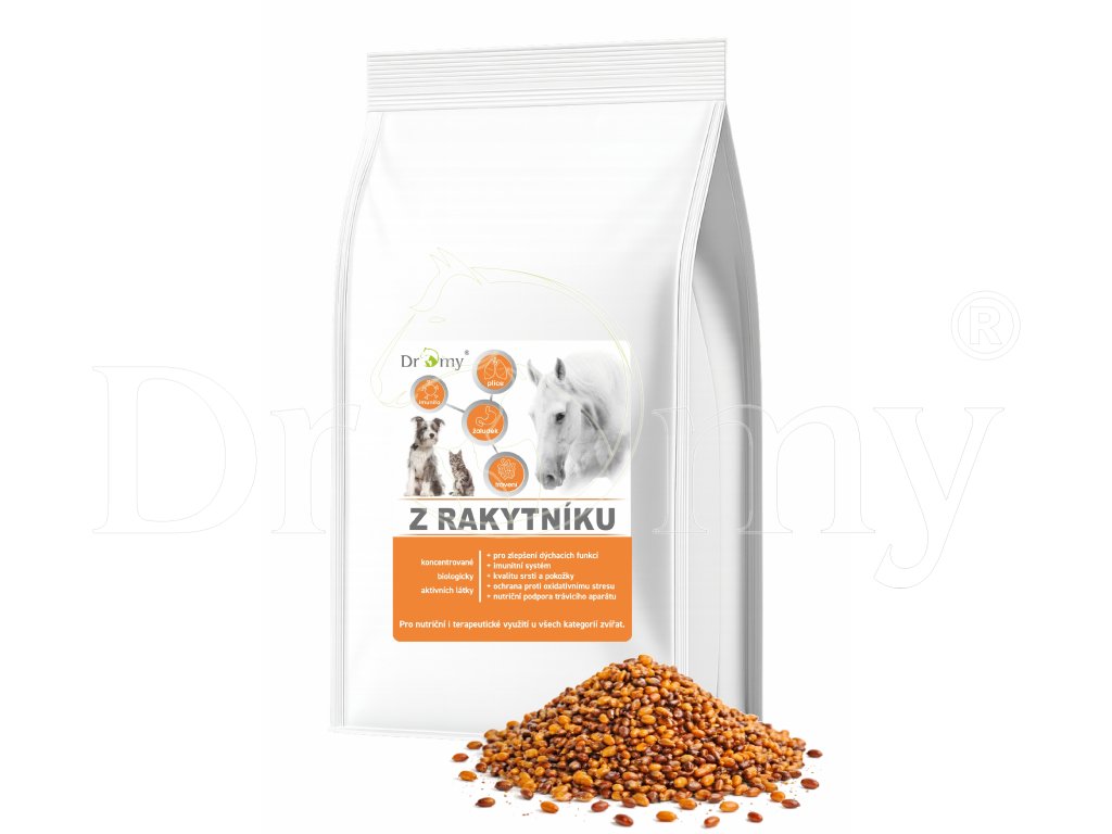 Rakytník je přírodním doplňkem vhodným zejména pro podporu trávení, imunitního systému, dýchacích cest a pro zlepšení kvality srsti a pokožky. Plody rakytníku obsahují mimořádně vysoké množství aktivních živin a antioxidačních sloučenin, které chrání stabilitu buněčných membrán a podílejí se na regulaci mnoha zánětlivých procesů. Antioxidanty působí v celém organismu a podporují jeho odolnost.
