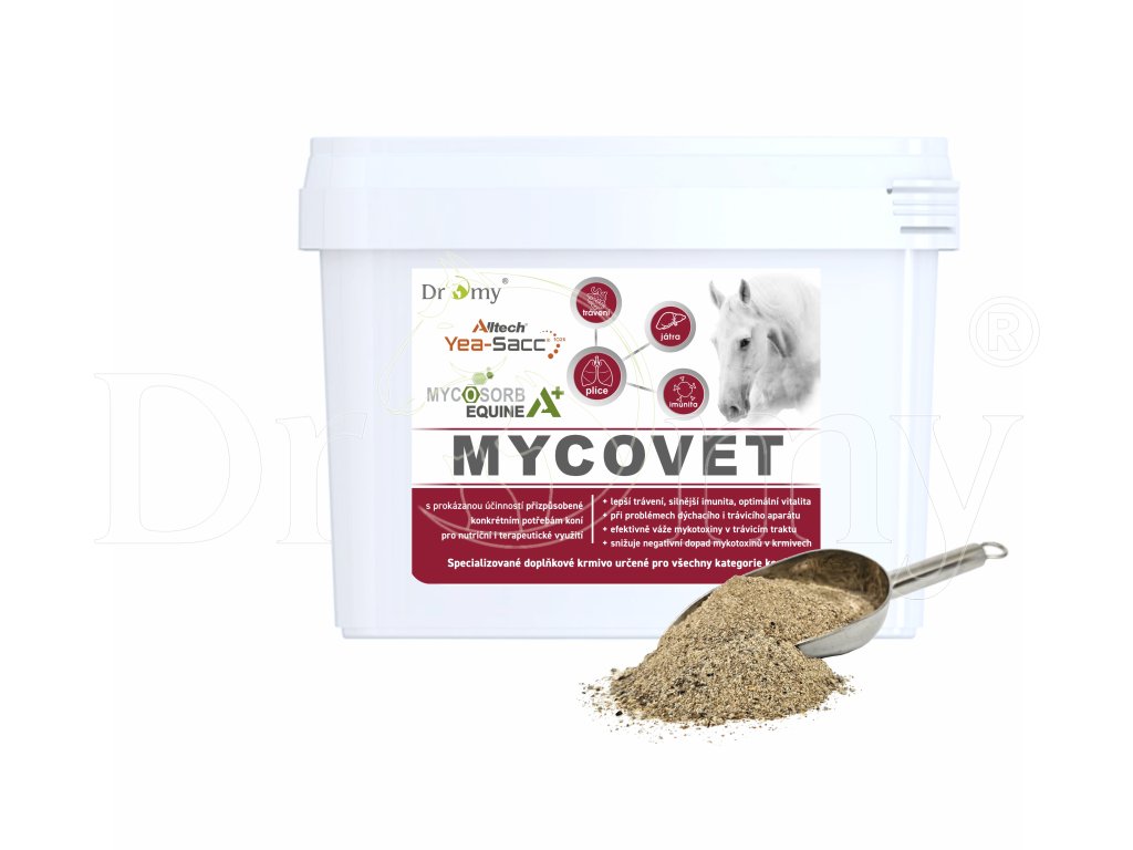 Myco VET je doplňkové krmivo určené k eliminaci mykotoxinů – škodlivých látek produkovaných plísněmi, které se běžně vyskytují v krmivech.