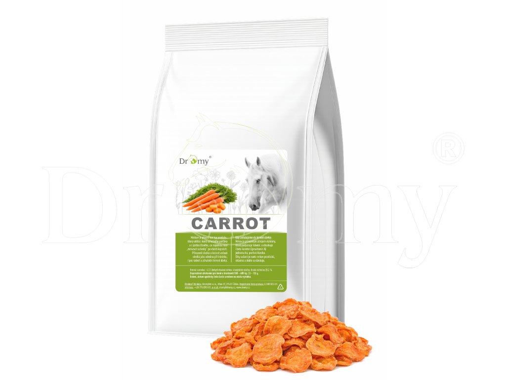 Mrkev je přirozeným zdrojem vlákniny, která podporuje trávení, a obsahuje i beta-karoten (provitamin A) – prostě taková jednoduchá, poctivá klasika bez složitostí. Díky sušení je navíc mrkev praktická, skladná a dobře se dávkuje: pár chipsů z ruky, hrstka do krmiva… a máte hotovo.