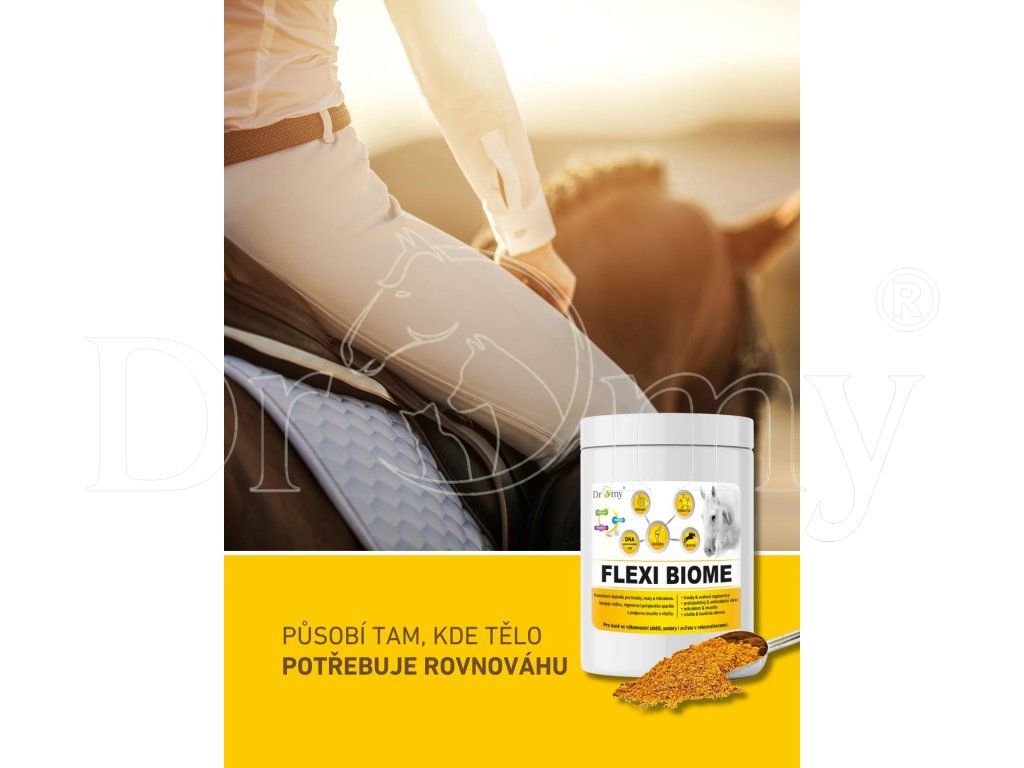 Flexi Biome je inovativní doplněk pro koně, který spojuje výživu kloubů, šlach a pojivových tkání s protizánětlivou ochranou a rovnováhou střevního mikrobiomu. Podporuje regeneraci pohybového aparátu, pružnost, vitalitu a celkovou imunitní rovnováhu.