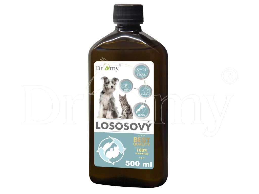 Lososový olej Premium, je přírodním zdrojem nenasycených mastných kyselin, které jsou z nutričního hlediska pro psy a kočky základním materiálem pro tvorbu a funkci buněčných membrán. Jsou zcela nepostradatelné pro transportní mechanismy a funkce enzymatických systémů. Esenciální mastné kyseliny DHA (kyselina dokosahexaenová) a EPA (kyselina eikosapentaenová) jsou nejvýznamnější složkou oleje. Tyto kyseliny si organismus nevytváří sám a jejich příjem do organismu je zcela závislý na dietě. Příznivě ovlivňují kardiovaskulární, svalový, nervový, respirační, imunitní i trávicí systém. Nedostatek esenciálních mastných kyselin se může projevit snížením obranyschopnosti organismu, únavou, změnou stavu pokožky, únavou, poruchou růstu i reprodukce. Játra jsou hlavním místem regulace činnosti při látkové výměně. Prostřednictvím fosfolipidů se podílejí na tvorbě lipoproteinů, které hrají podstatnou roli při transportu tuků.